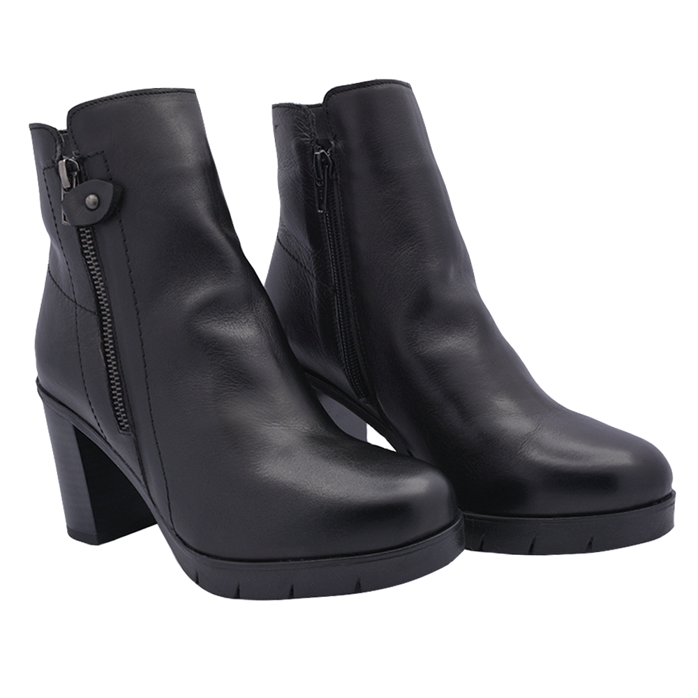 Aeros μποτάκι δερμάτινο με τακούνι και φερμουάρ