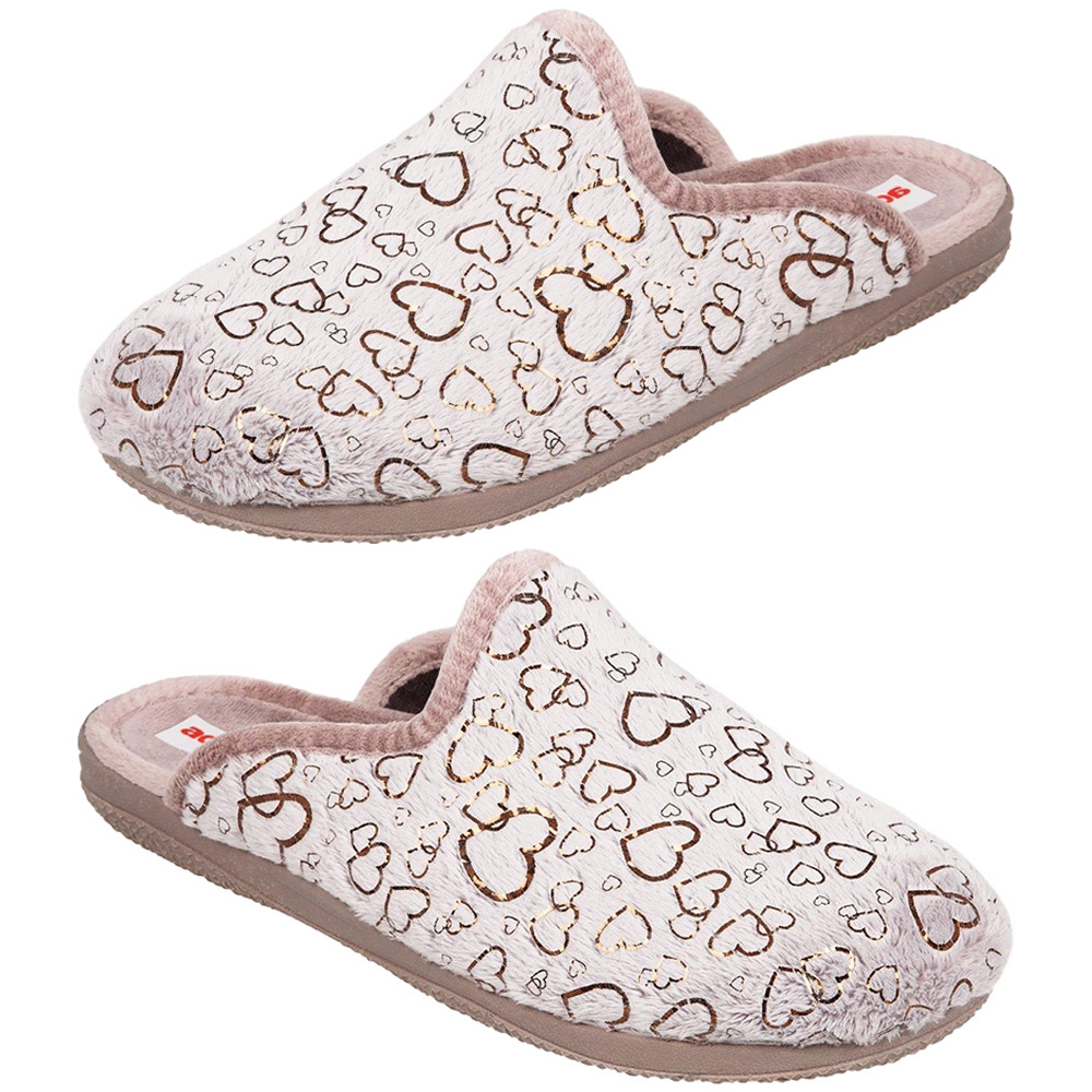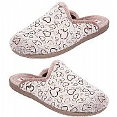 Γυναικεία Ισπανική παντόφλα Adams Slippers, σε γκρι χρώμα με καρδιές. Διαθέτει απαλό, ζεστό ύφασμα και μαλακό πάτημα. Κατασκευασμένη με ενισχυμένο και εύκαμπτο πάτο, καθώς και αντιολισθητική σόλα απο λάστιχο.