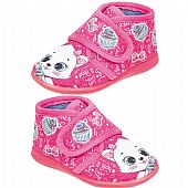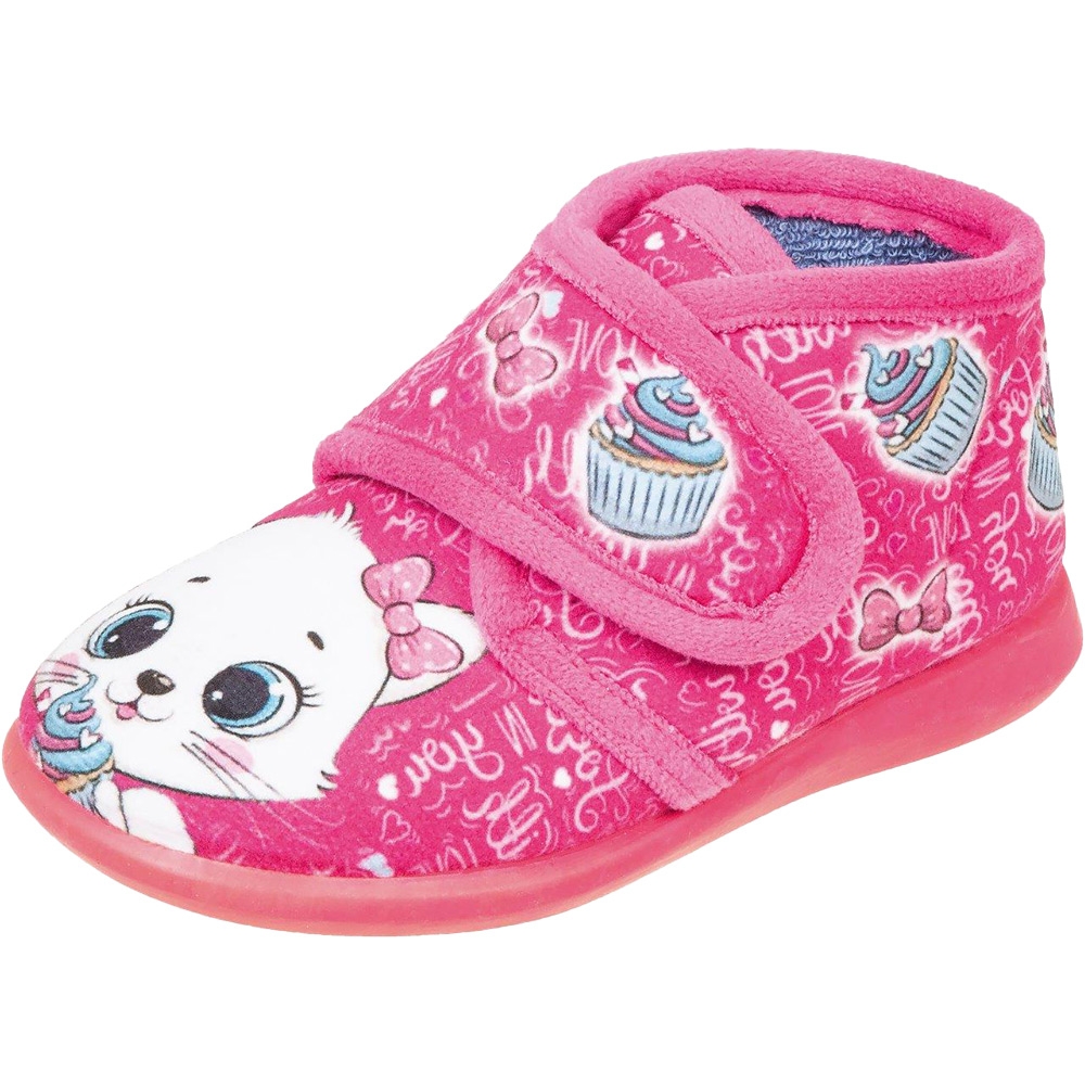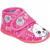 Κοριτσίστικο Ισπανικό παντοφλάκι Adams Kids, σε φούξια χρώμα με γάτα. Διαθέτει απαλό, ζεστό ύφασμα και μαλακό πάτημα. Κατασκευασμένο με δερμάτινο, ανατομικό και εύκαμπτο πάτο, καθώς και αντιολισθητική σόλα απο λάστιχο.