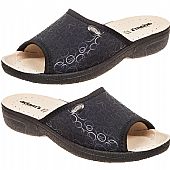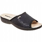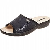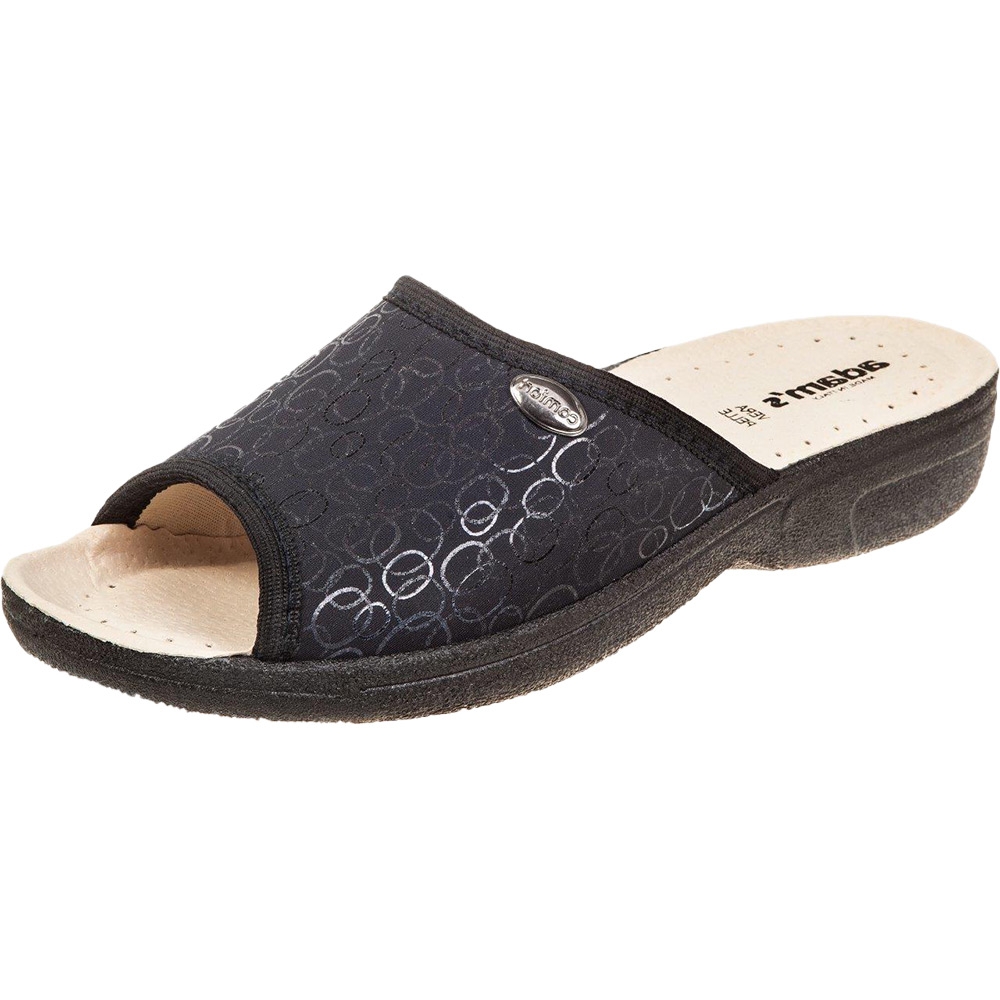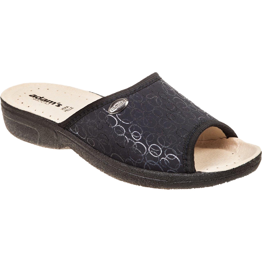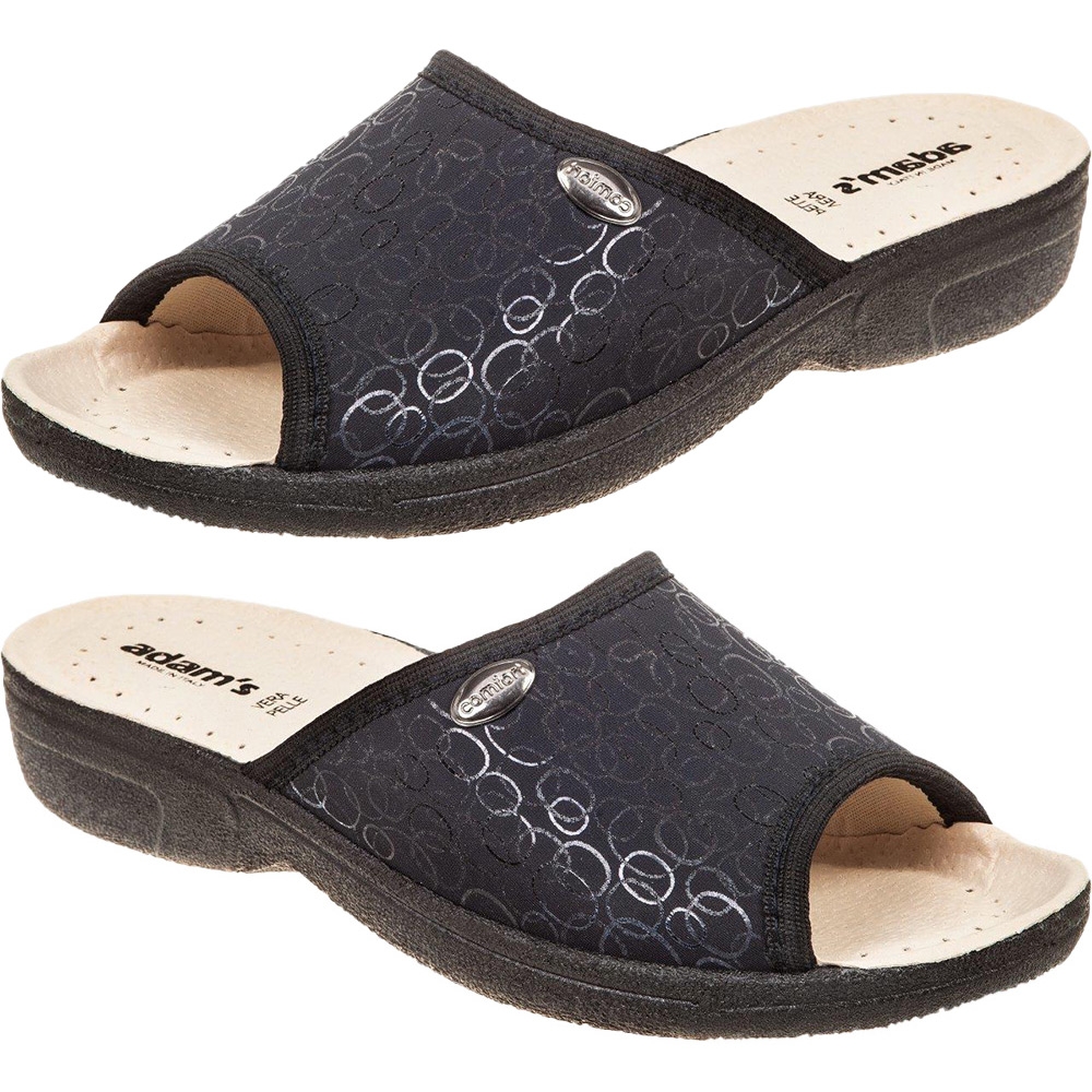 Γυναικεία παντόφλα Adams Shoes, σε μαύρο χρώμα. Διαθέτει ελαστικό λουρί, ανατομική και δερμάτινη εσωτερική σόλα και αντιολισθητική εξωτερική σόλα.