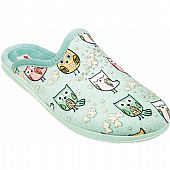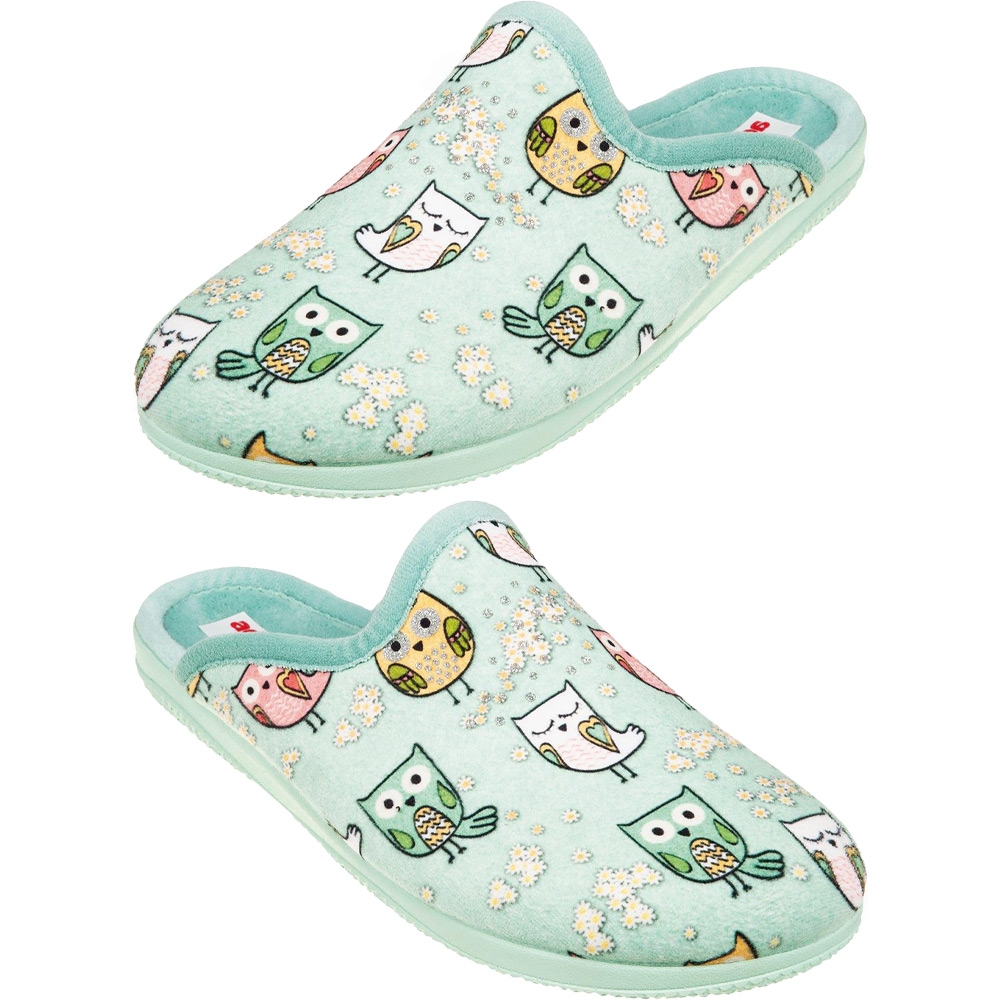 Γυναικεία Ισπανική παντόφλα Adams Slippers, σε φυστικί χρώμα με σχέδιο κουκουβάγιες. Διαθέτει απαλό, ζεστό ύφασμα και μαλακό πάτημα. Κατασκευασμένη με ενισχυμένο και εύκαμπτο πάτο, καθώς και αντιολισθητική σόλα απο λάστιχο.