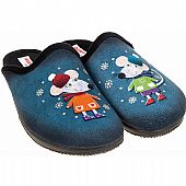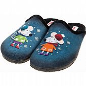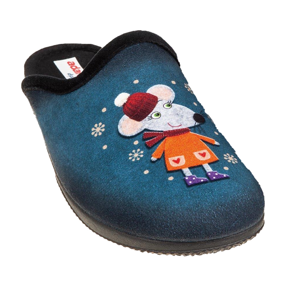 Γυναικεία Ισπανική παντόφλα Adams Slippers, σε μπλε ραφ χρώμα με σχέδιο ποντίκια. Διαθέτει απαλό, ζεστό ύφασμα και μαλακό πάτημα. Κατασκευασμένη με ενισχυμένο και εύκαμπτο πάτο, καθώς και αντιολισθητική σόλα απο λάστιχο.