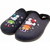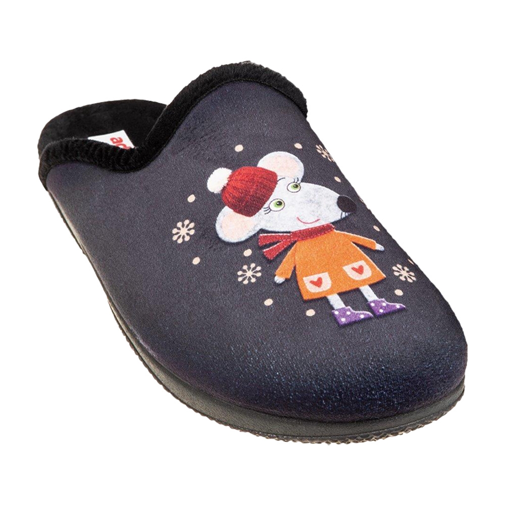Γυναικεία Ισπανική παντόφλα Adams Slippers, σε μαύρο χρώμα με σχέδιο ποντίκια. Διαθέτει απαλό, ζεστό ύφασμα και μαλακό πάτημα. Κατασκευασμένη με ενισχυμένο και εύκαμπτο πάτο, καθώς και αντιολισθητική σόλα απο λάστιχο.
