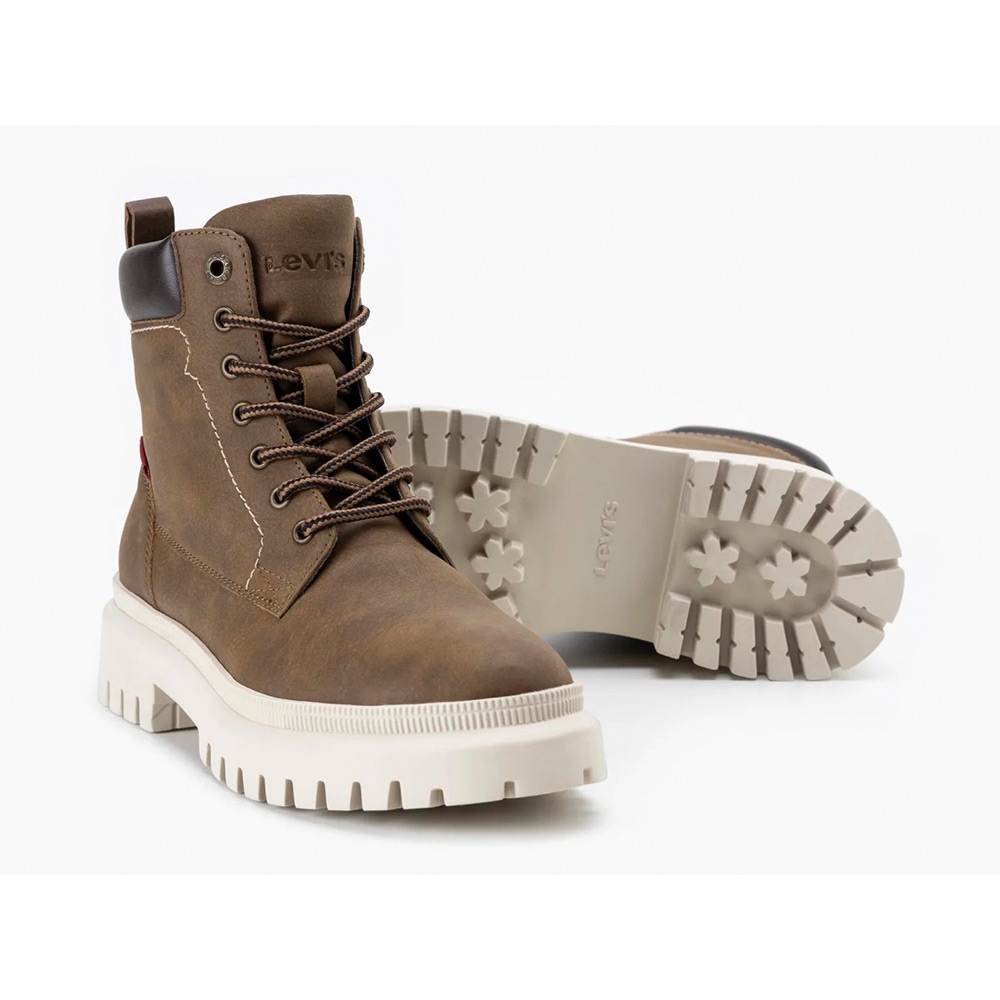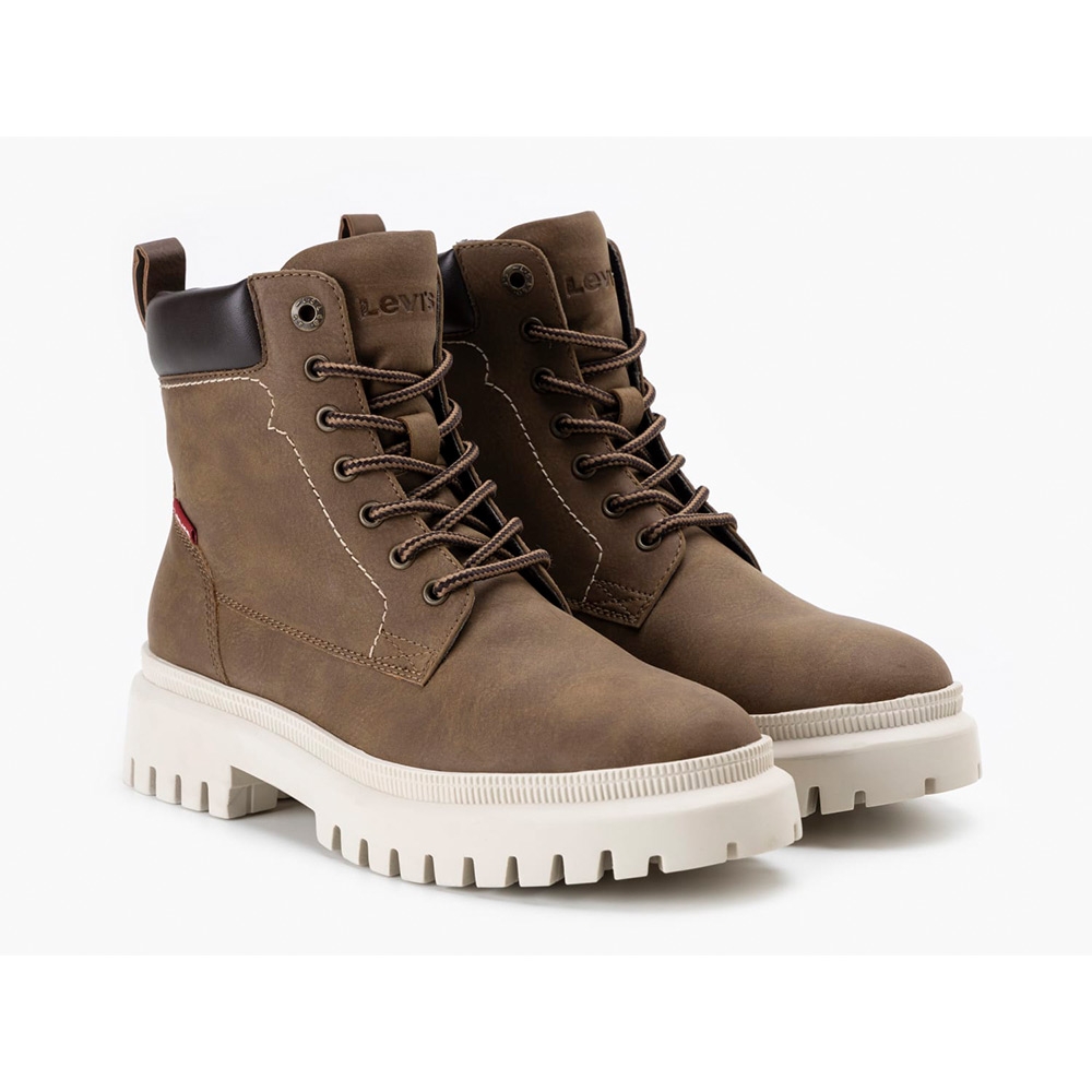 Το Levi’s μποτάκι σε καφέ χρώμα συνδυάζει στιβαρή κατασκευή και καθημερινή άνεση. Με ανθεκτικό συνθετικό υλικό, ενισχυμένο κολάρο και σταθερή τρακτερωτή σόλα, προσφέρει σιγουριά στο περπάτημα και διαχρονικό στυλ που ταιριάζει σε κάθε casual εμφάνιση.