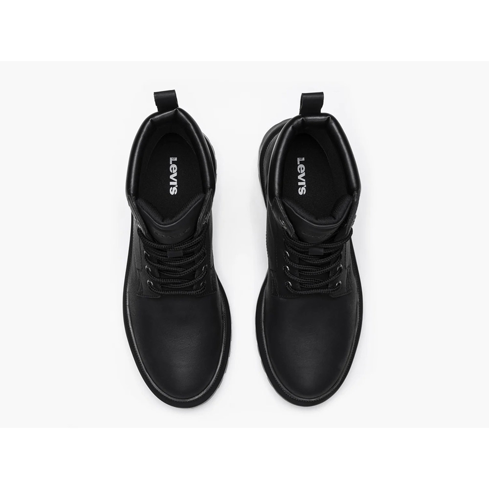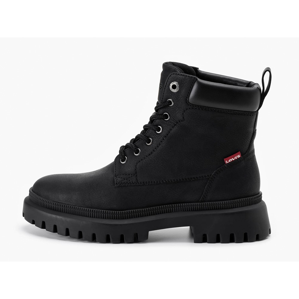 Το Levi’s μποτάκι σε μαύρο χρώμα συνδυάζει στιβαρή κατασκευή και καθημερινή άνεση. Με ανθεκτικό συνθετικό υλικό, ενισχυμένο κολάρο και σταθερή τρακτερωτή σόλα, προσφέρει σιγουριά στο περπάτημα και διαχρονικό στυλ που ταιριάζει σε κάθε casual εμφάνιση.
