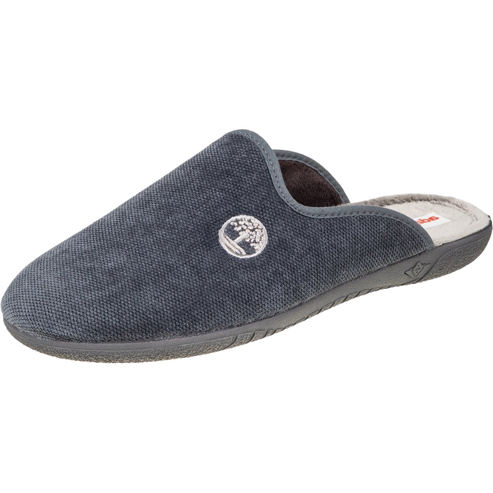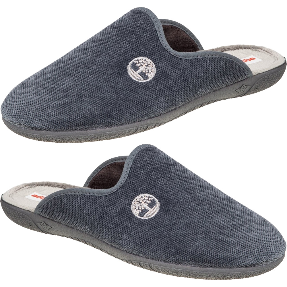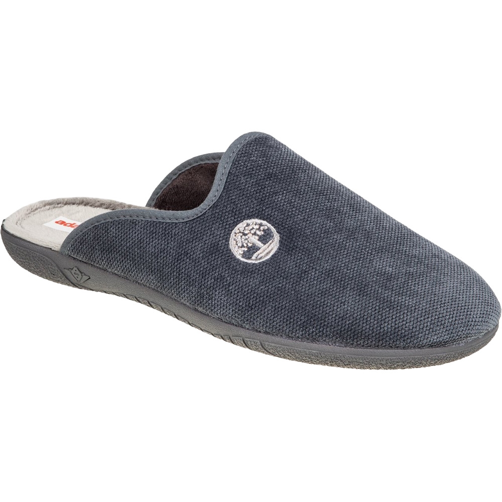Ανδρική Ισπανική παντόφλα Adams Slippers, σε γκρι χρώμα με σχέδιο Timberland. Διαθέτει απαλό, ζεστό ύφασμα και μαλακό πάτημα. Κατασκευασμένη με ενισχυμένο και εύκαμπτο πάτο, καθώς και αντιολισθητική σόλα απο λάστιχο.