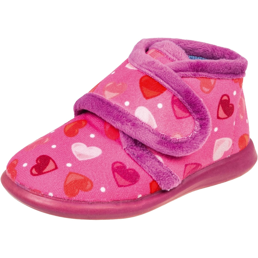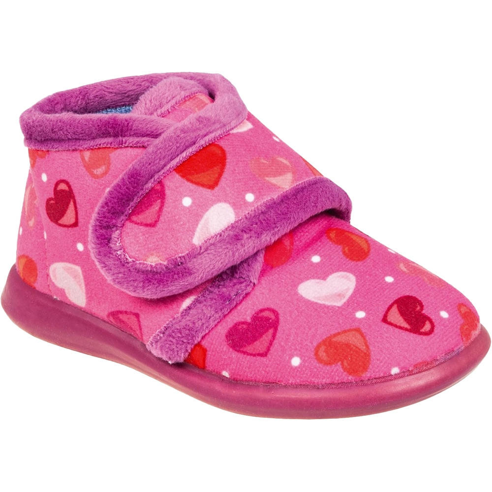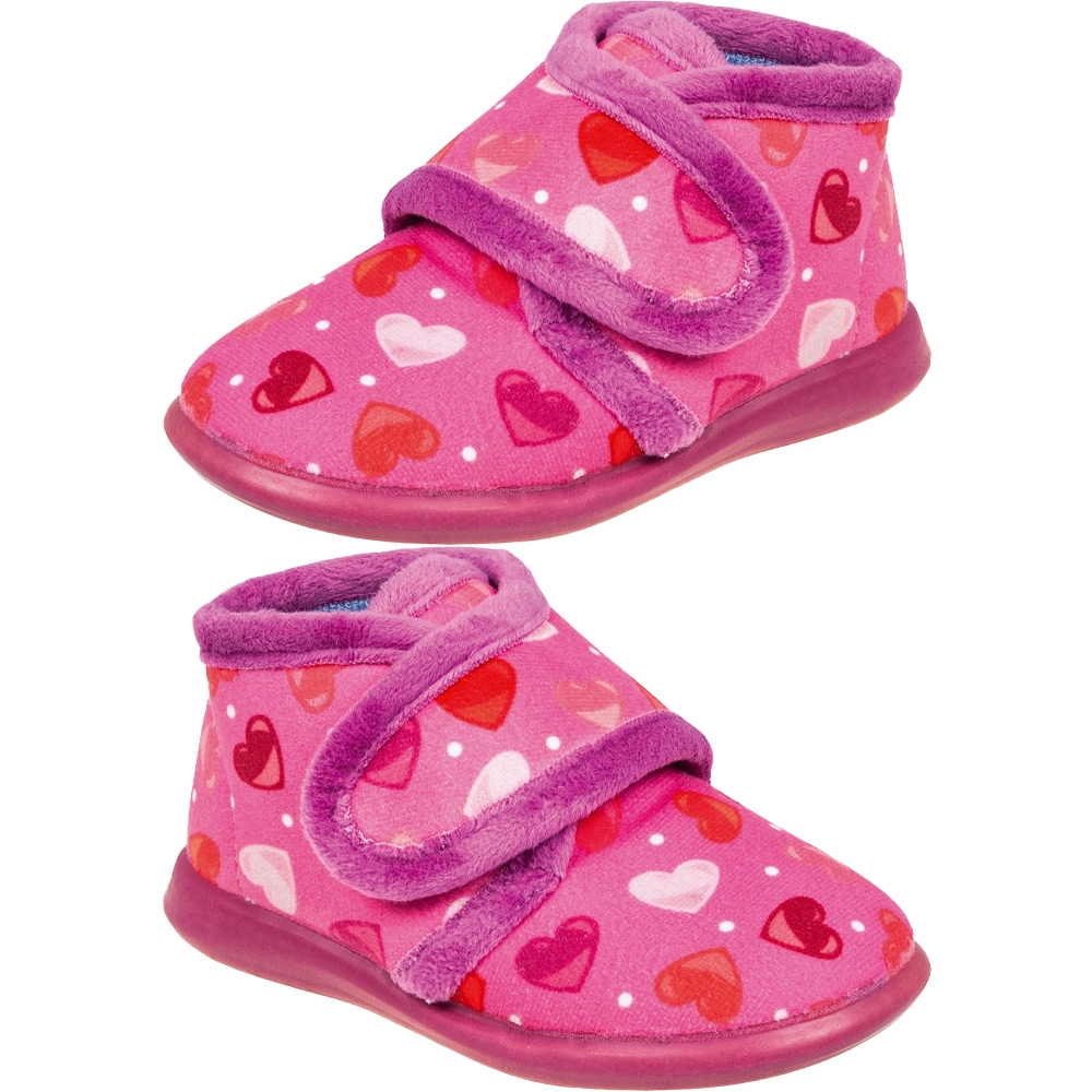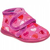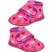Κοριτσίστικο Ισπανικό παντοφλάκι Adams Kids, σε φούξια χρώμα με καρδίες. Διαθέτει απαλό, ζεστό ύφασμα και μαλακό πάτημα. Κατασκευασμένο με δερμάτινο, ανατομικό και εύκαμπτο πάτο, καθώς και αντιολισθητική σόλα απο λάστιχο.